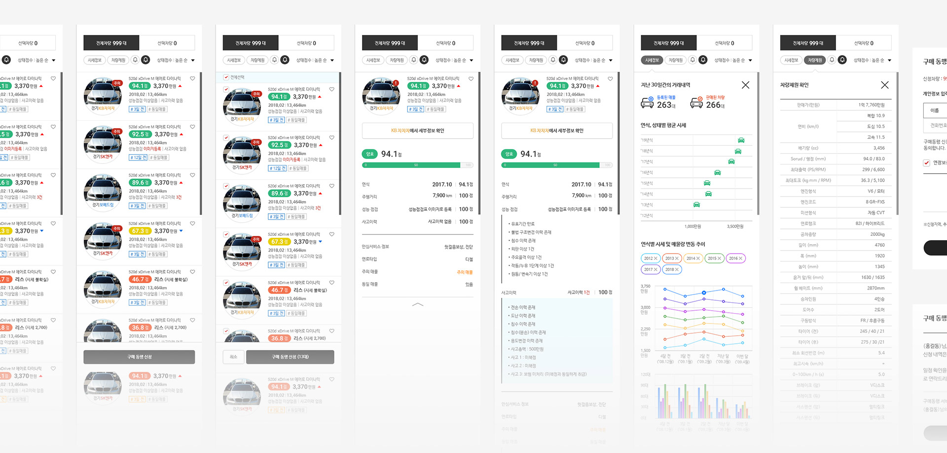 차를 잘 모르는 초보자와 딜러 (전문가) 모두 사용할 있도록 UI/UX에 최대한 집중을 하였고, 많은 DATA를 쉽게 구분하여 볼 수 있도록 디자인 하였습니다.